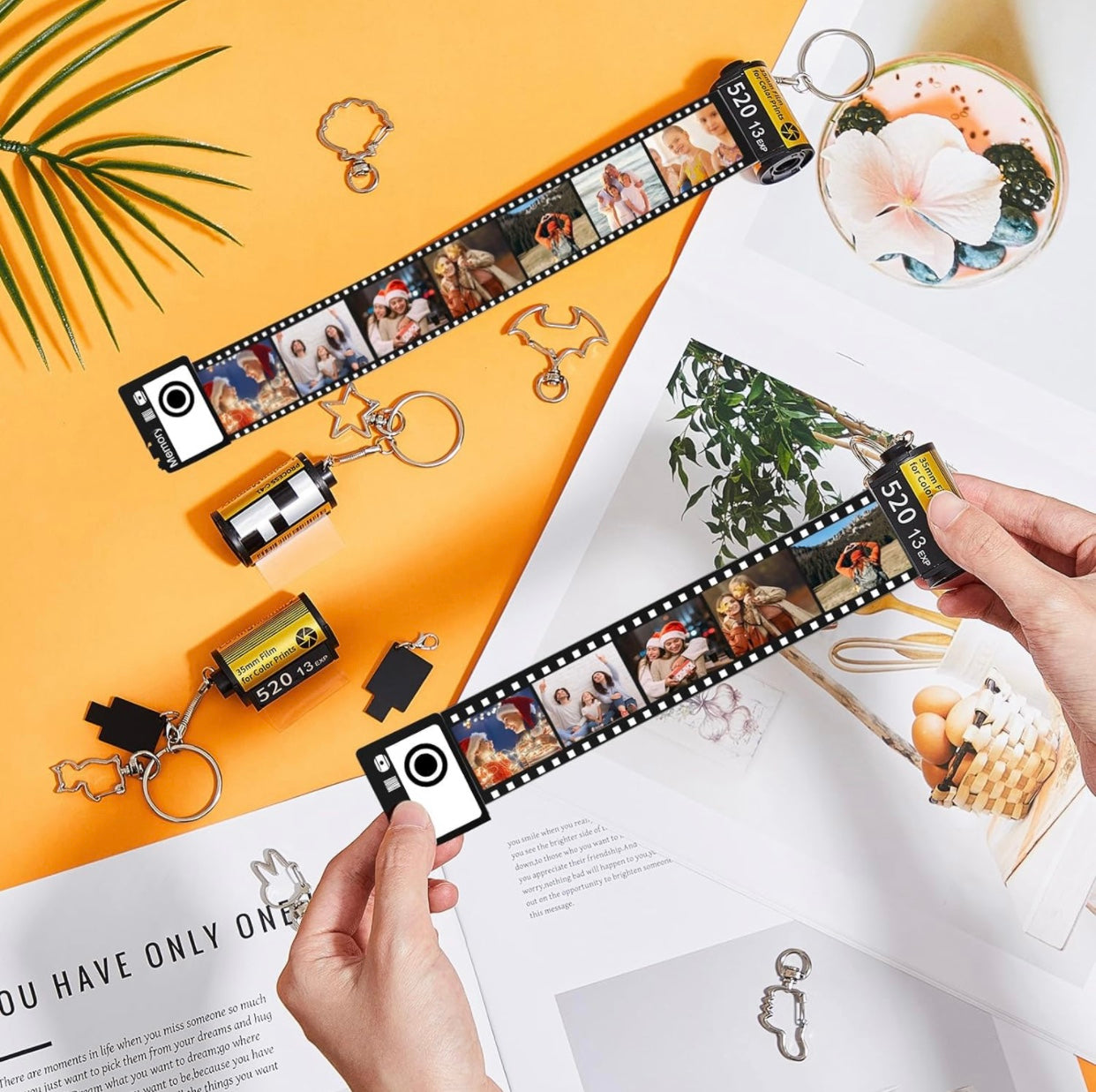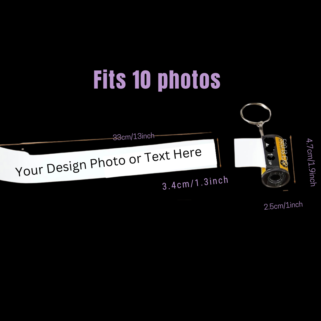 This novelty camera film roll keychain is a perfect gift for anyone, not just photographers! Each keychain can hold up to 10 photos and can be easily rolled up and pulled out to show off your favorite memories. A unique and stylish way to showcase your photos on the go!
