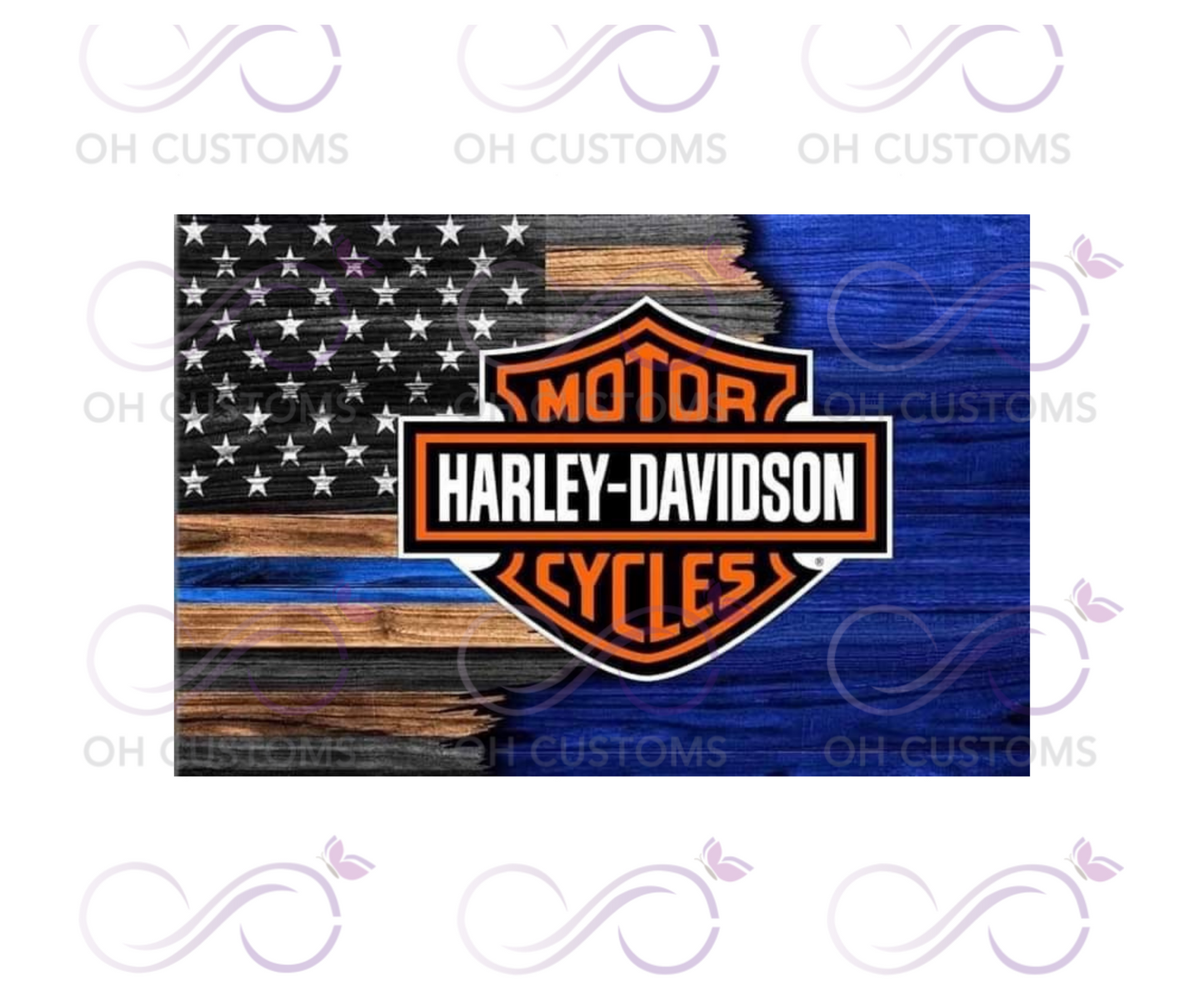 HD (Harley Davidson) inspired with a American wooden flag painted background
