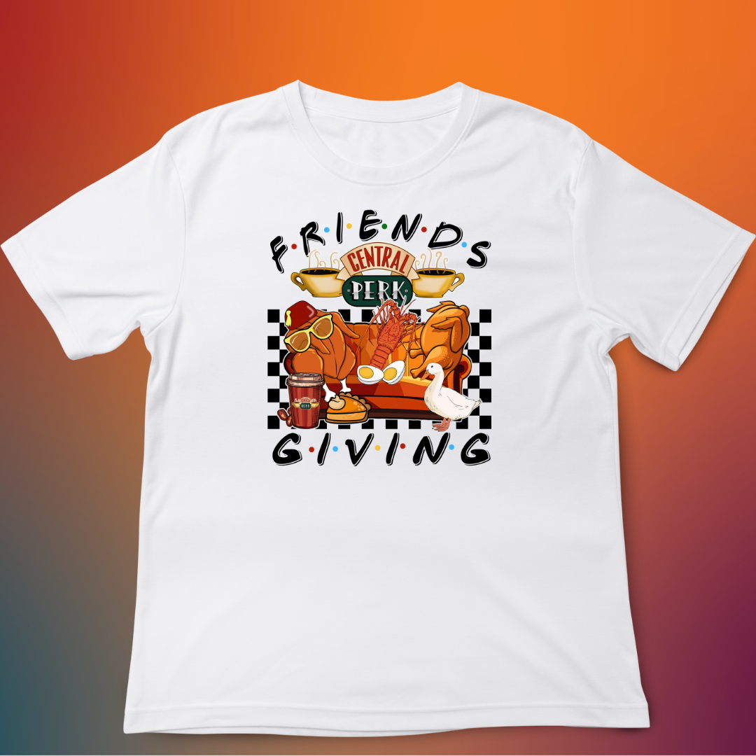 Be prepared to give thanks - in Friends fashion! This Friends Giving t-shirt is a jovial and playful way to show your admiration for the show and the holidays. Celebrating with Friends-giving is always more enjoyable than 'normal' giving, so grab the perfect garb for a joyful celebration! It's got everything you adore!