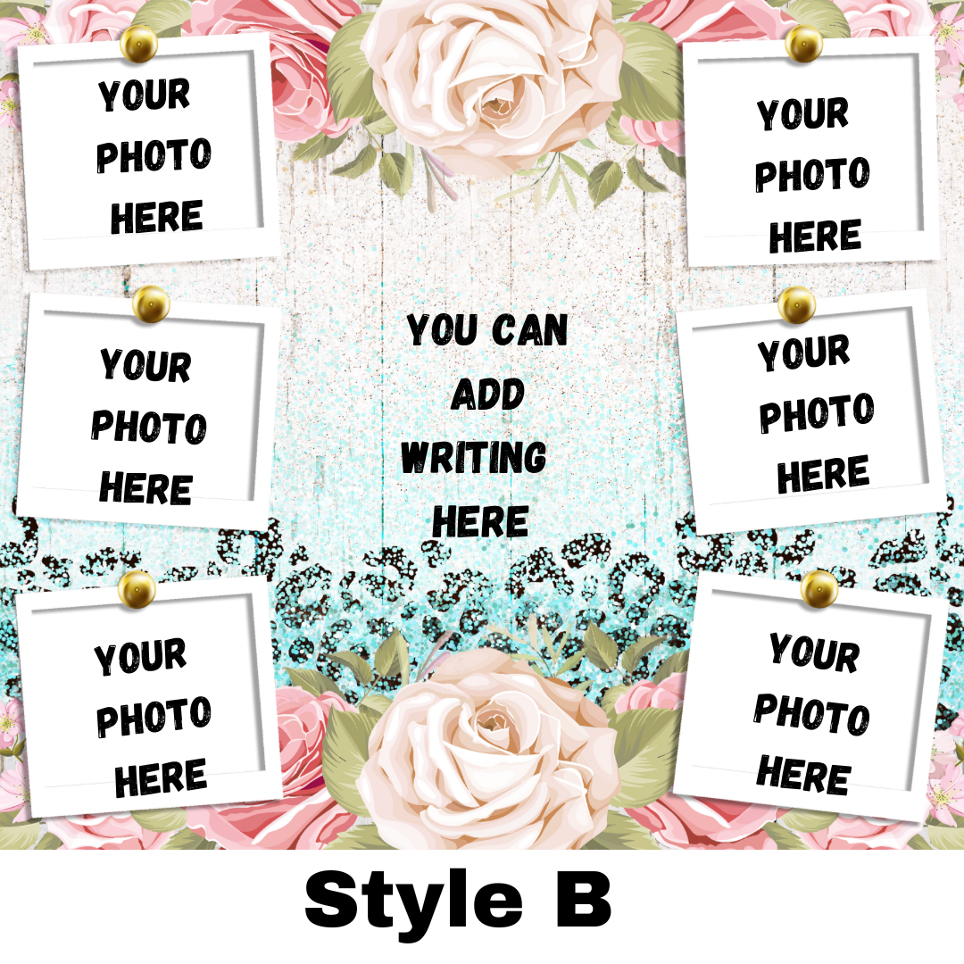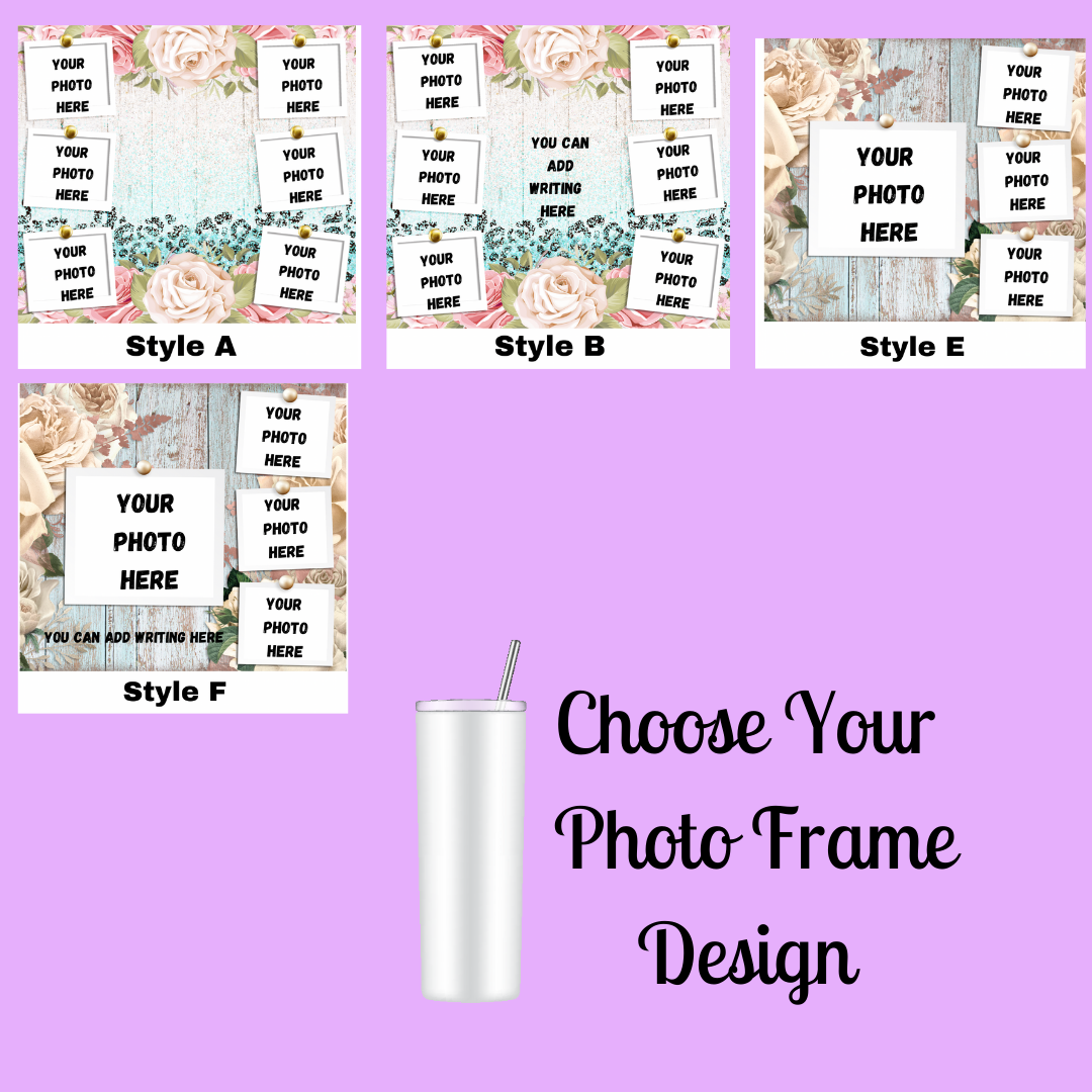 Capture your cherished moments in exquisite fashion with our Country Rose Photo Frame Sublimation Cups/Tumblers! Select from a variety of stunning frames and effortlessly upload your own photos for a customized present that will be treasured for any special event. Bring your pictures to the forefront and leave a lasting impact with our sublimation cups, featuring beautiful roses, a touch of leopard print, and a hint of wood grain in the background.