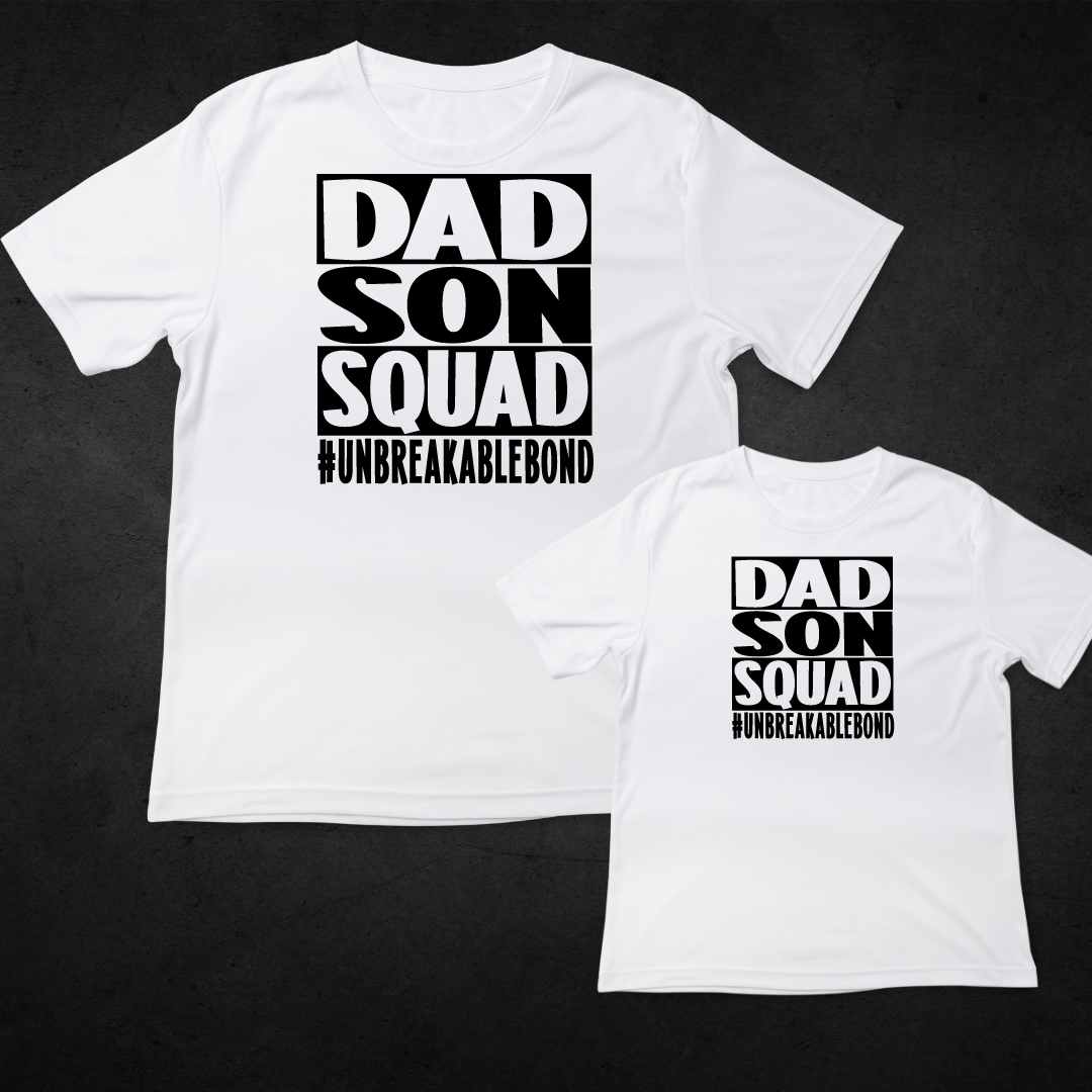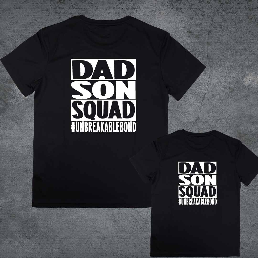 Create a Dad Son Squad with this bundle! The set includes a shirt for Dad and add a shirt for kids. Show your spirit and dress to match - perfect for family outings and special occasions.