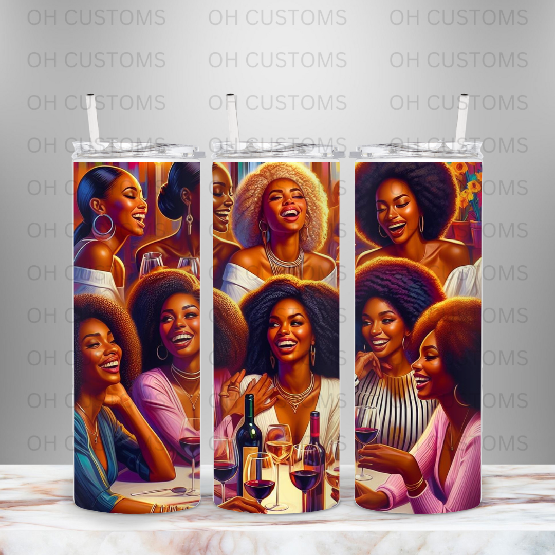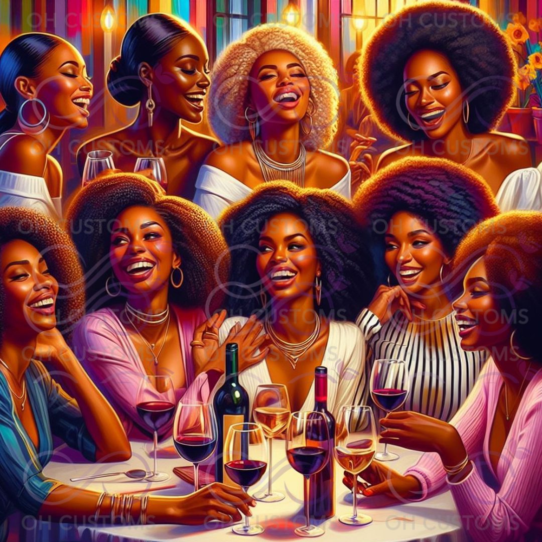 Celebrate the essence of sisterhood with our "Elegance in Every Sip" sublimation tumbler wrap design, a refined addition to our "Sisterhood Sips Collection" 🥂. This enchanting digital artwork features a vibrant depiction of Black women gathered around a table, sharing laughter and wine 🍷. Crafted for digital download, this design is ready to infuse your tumbler creations with the spirit of unity and joy. Raise a glass to the harmonious moments of sisterhood—acquire this digital masterpiece instantly!