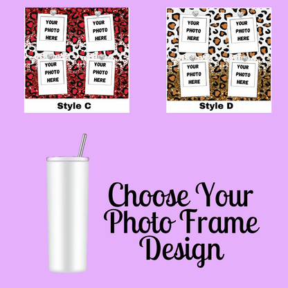 Show off your memories in style with our leopard photo frame tumblers! Choose from a variety of frames and easily upload your photos for a personalized gift that's perfect for any occasion. Bring your photos to life and make a lasting impression with our sublimation cups.
