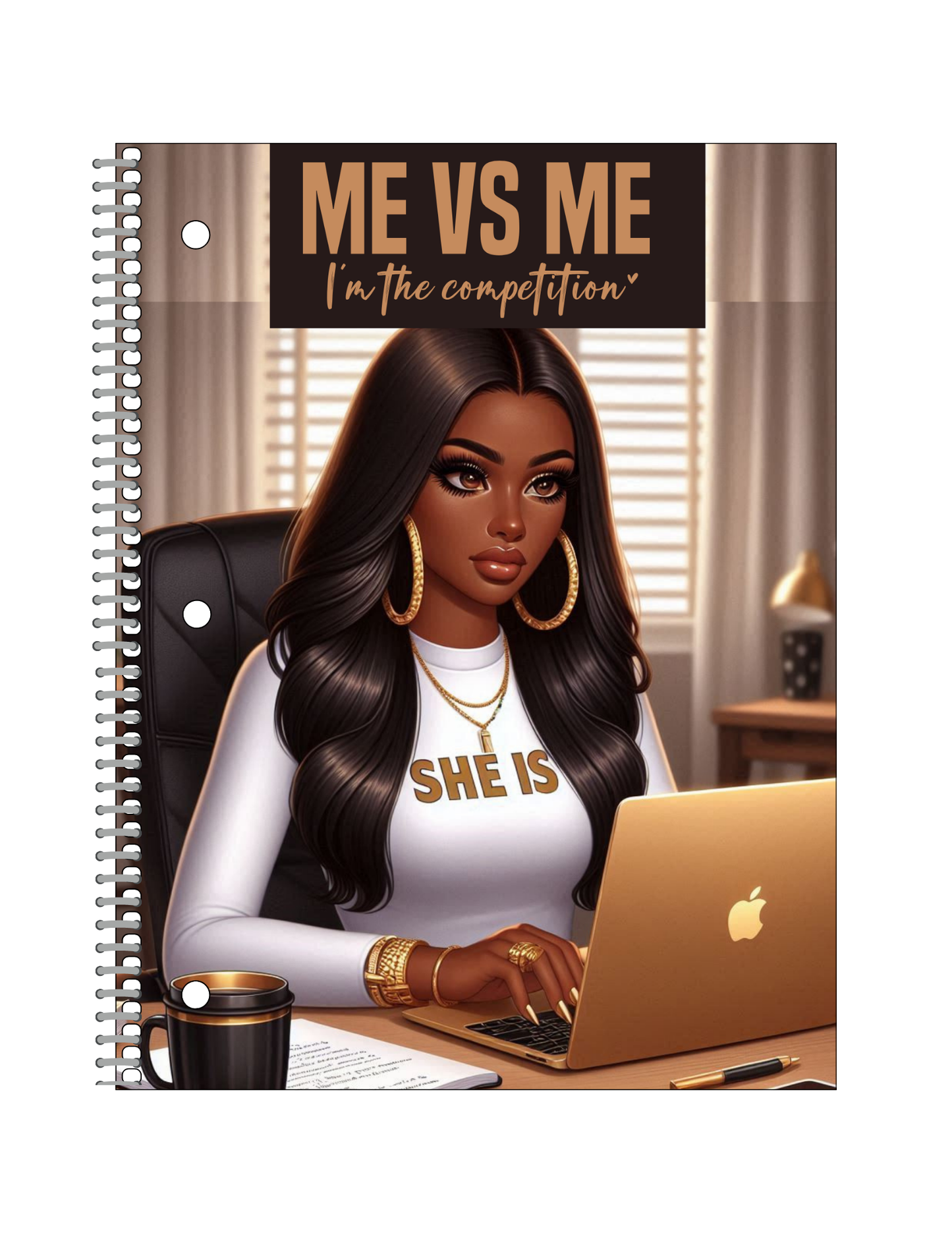 The Me vs Me Notebook is here to empower boss babes everywhere! With a powerful cover featuring a boss babe at work and the phrase "Me vs Me I'm the competition," this notebook is perfect for jotting down ideas, thoughts, and more. Say goodbye to boring notebooks and hello to a fierce and functional addition to your work essentials.