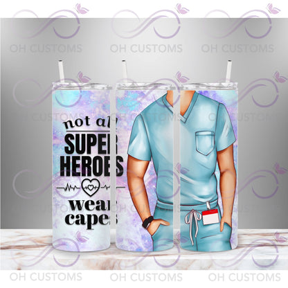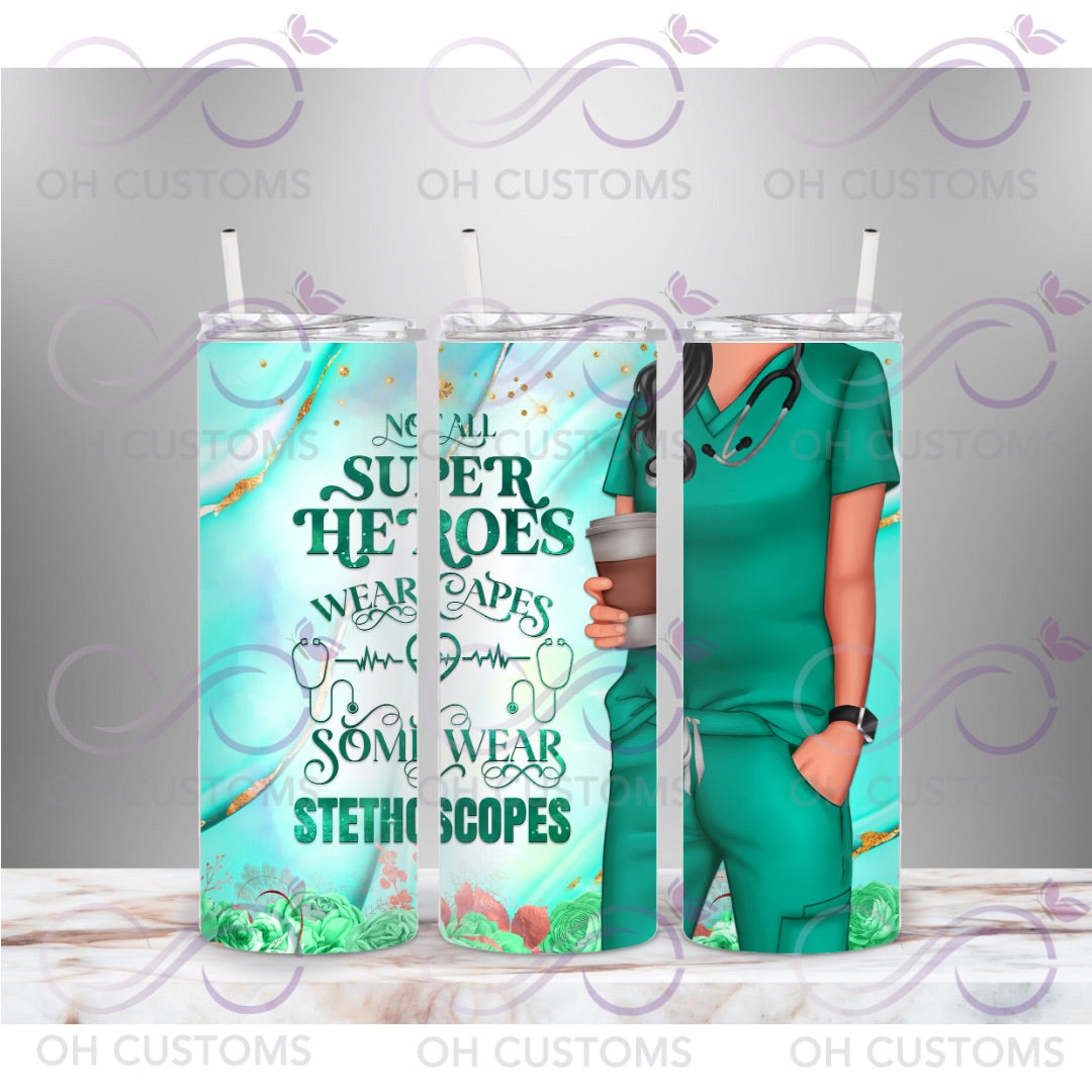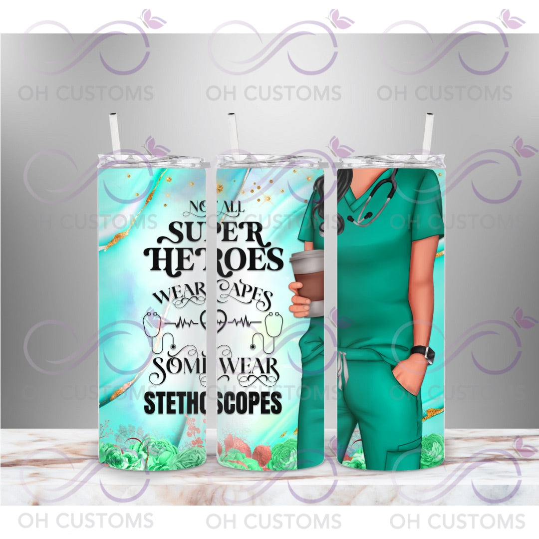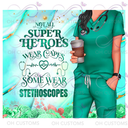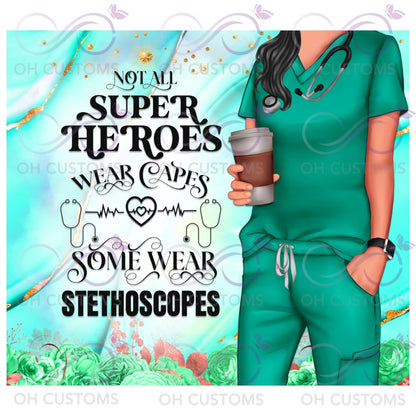 Celebrate your incredible nurse superhero with this unique tumbler! This 20 oz tumbler features a stunning picture of a nurse in scrubs, along with a playful and inspiring message. Perfect for keeping drinks hot or cold, share your appreciation with a thoughtful gift!
