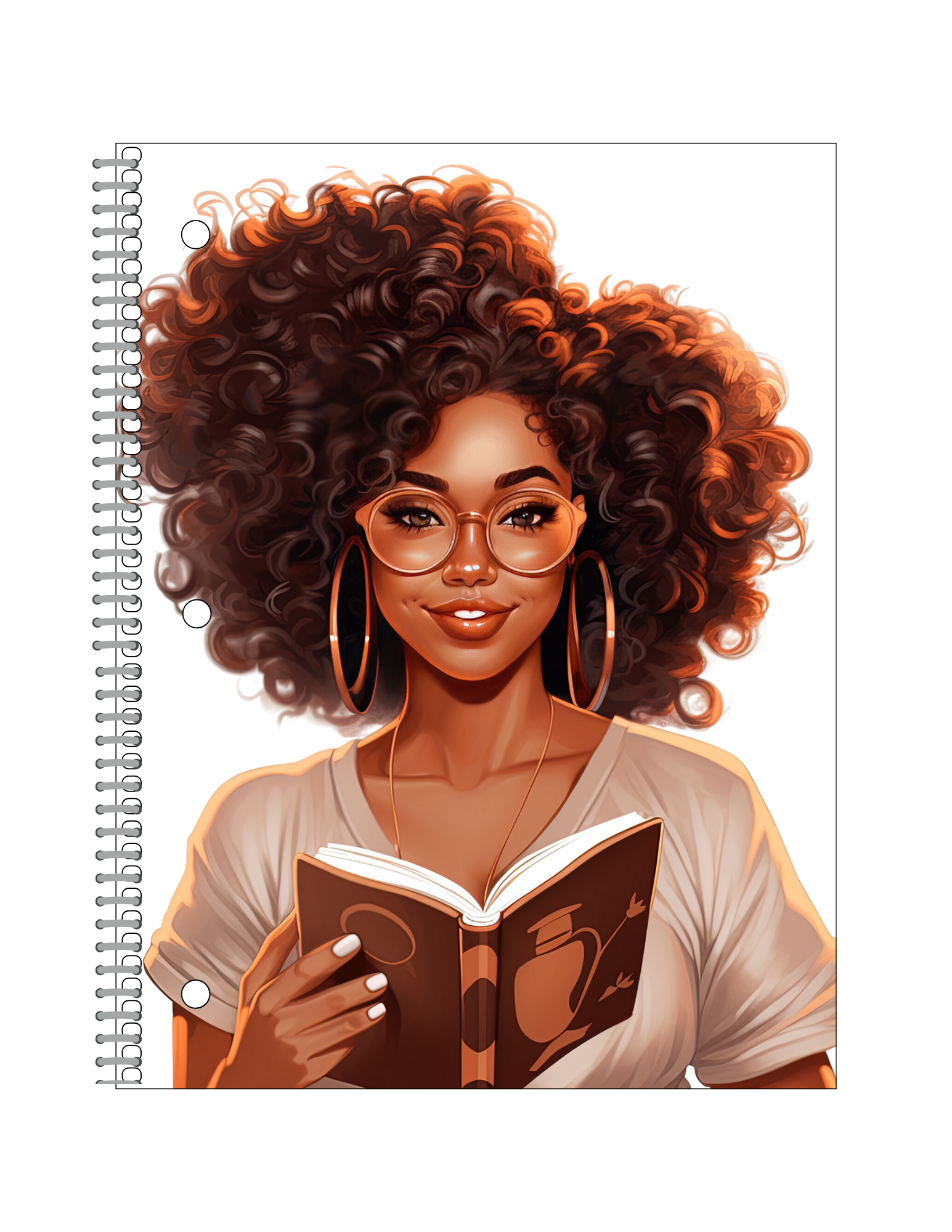 Introducing our Study Girl Notebook! The cover features a joyful black woman holding a book, perfect for taking notes in school, business meetings, or even during Bible study. With this notebook, you'll feel inspired to expand your knowledge and jot down ideas.